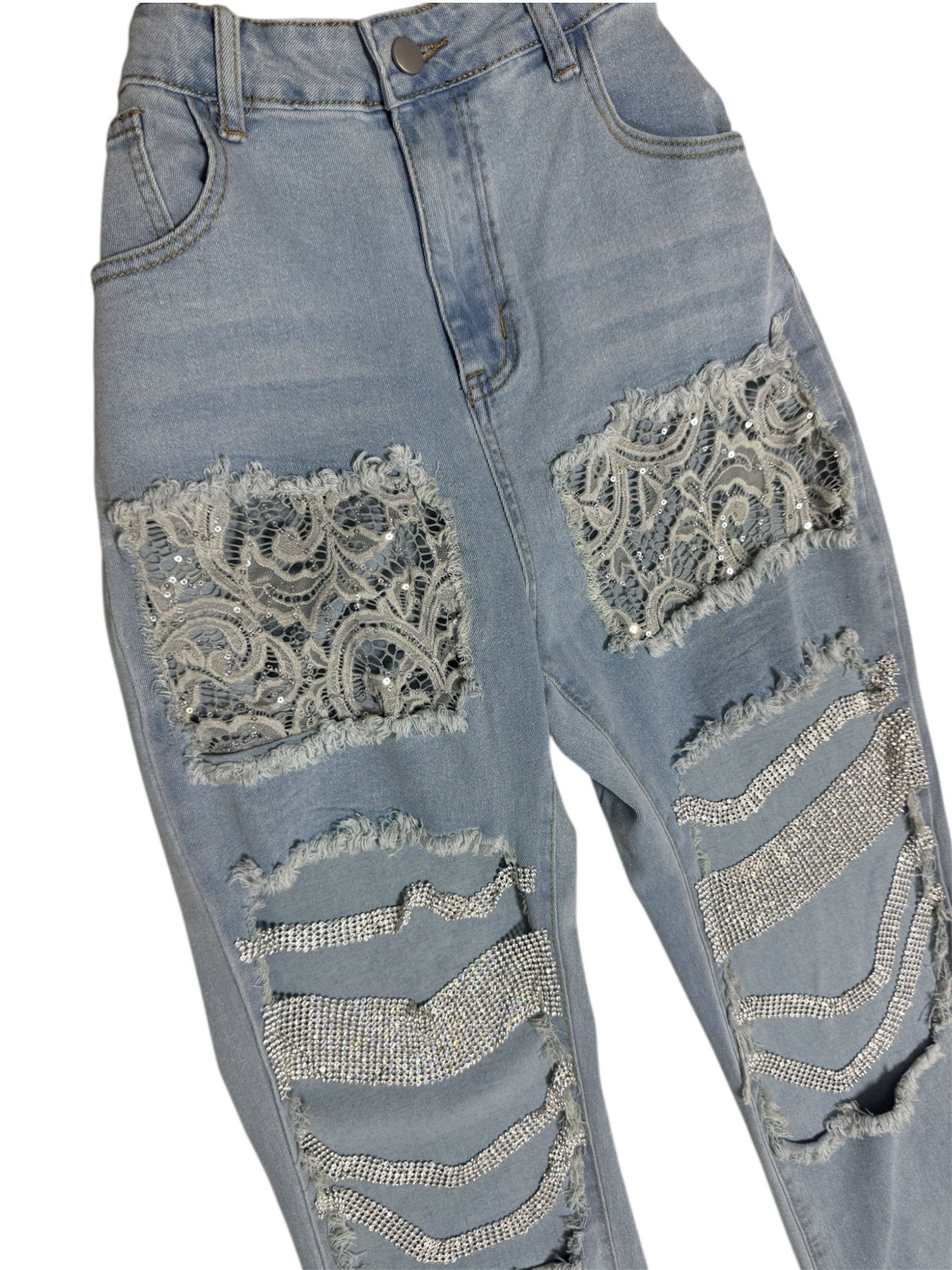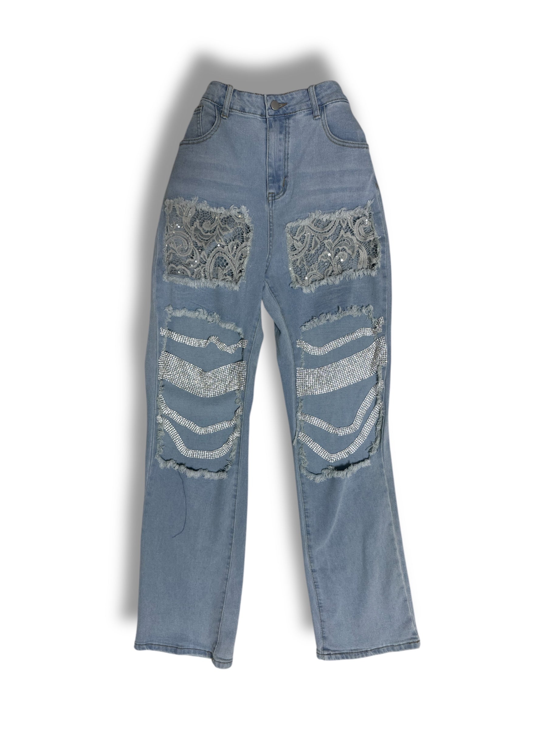 Mahón Plus con Encaje y Detalles Brillantes – Glamour