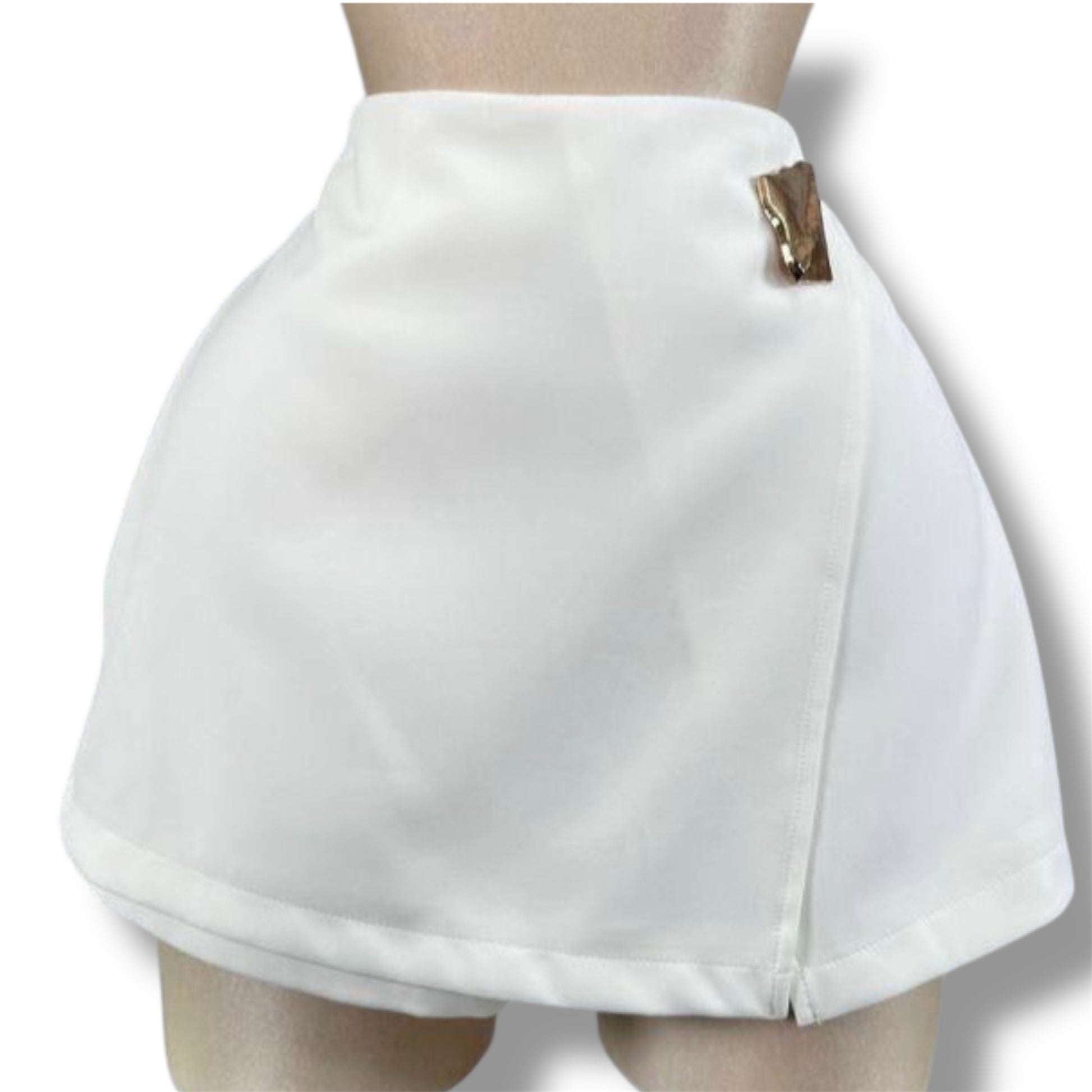Falda Short Blanca Elegance Detalle Dorado