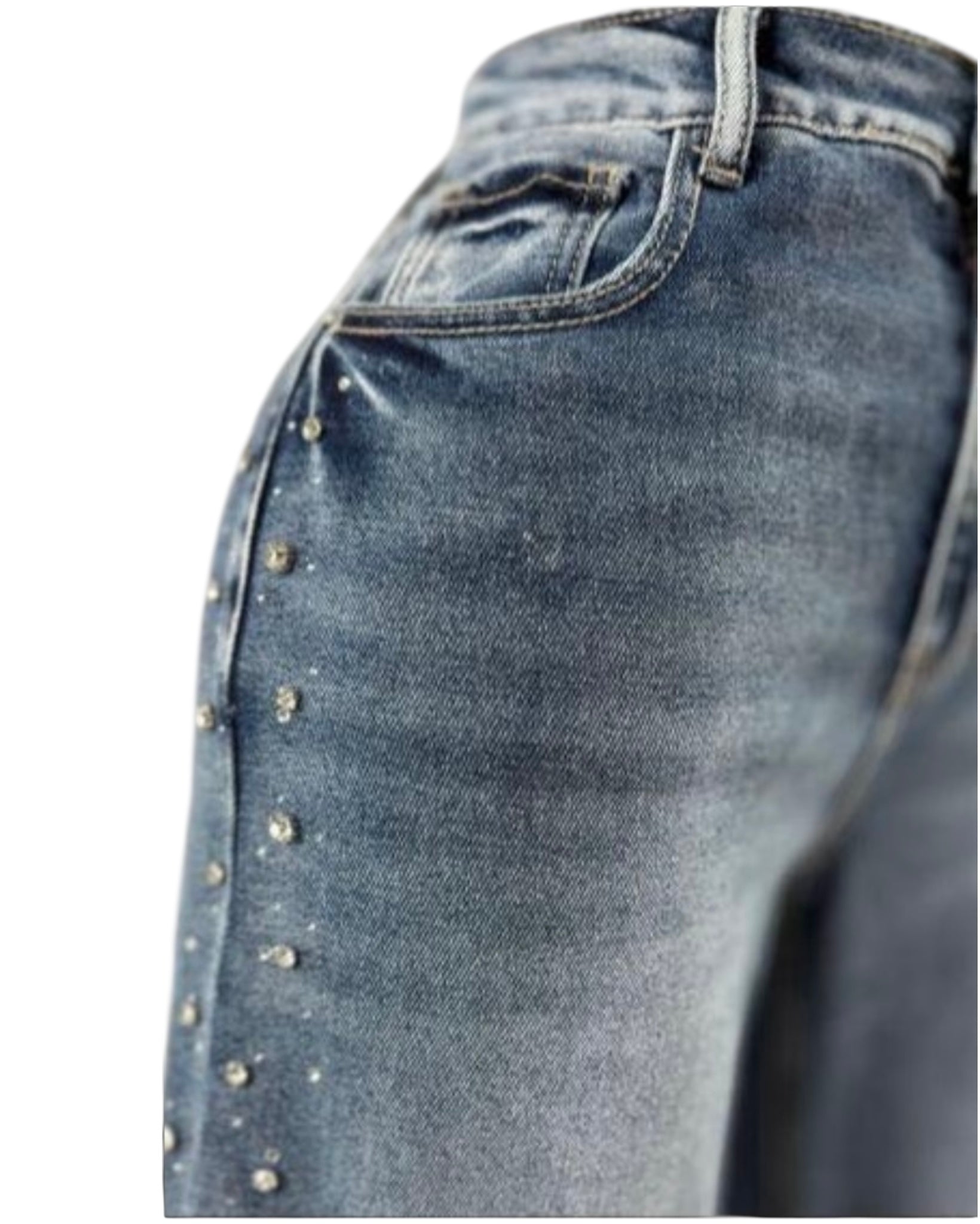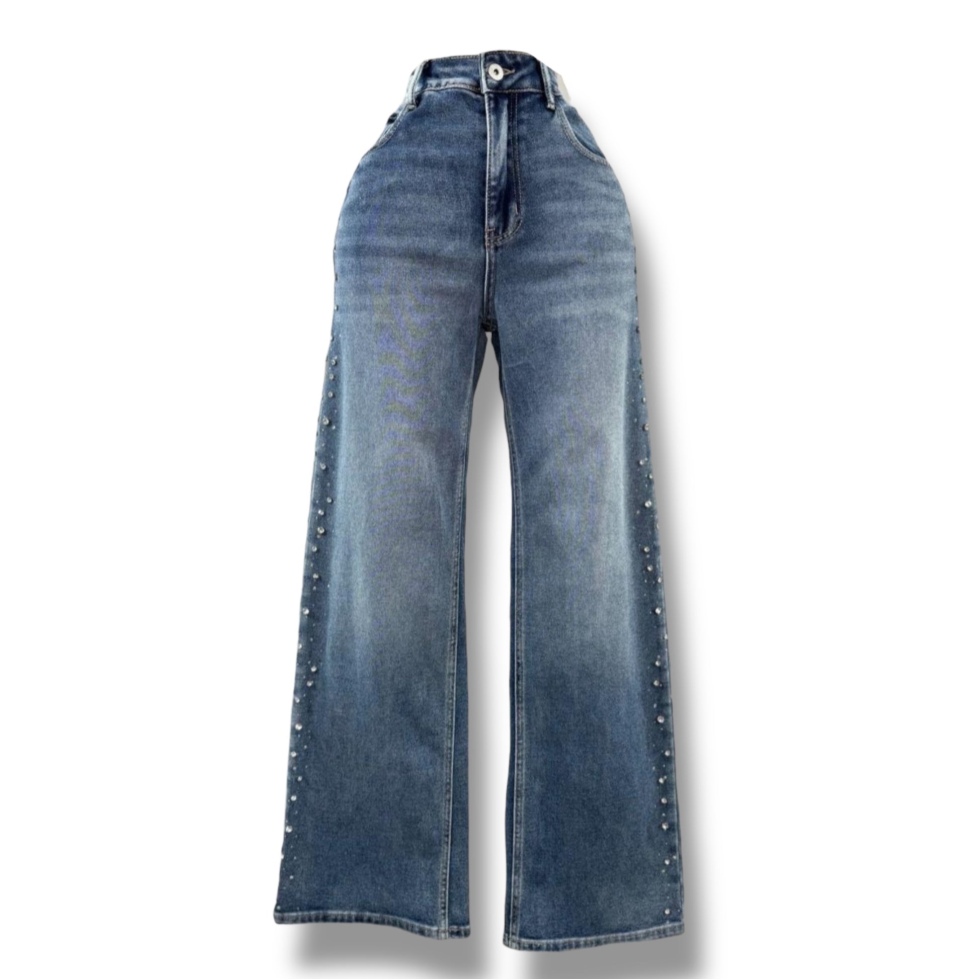 Mahón Wide Leg de Tiro Alto con Detalle de Pedrería