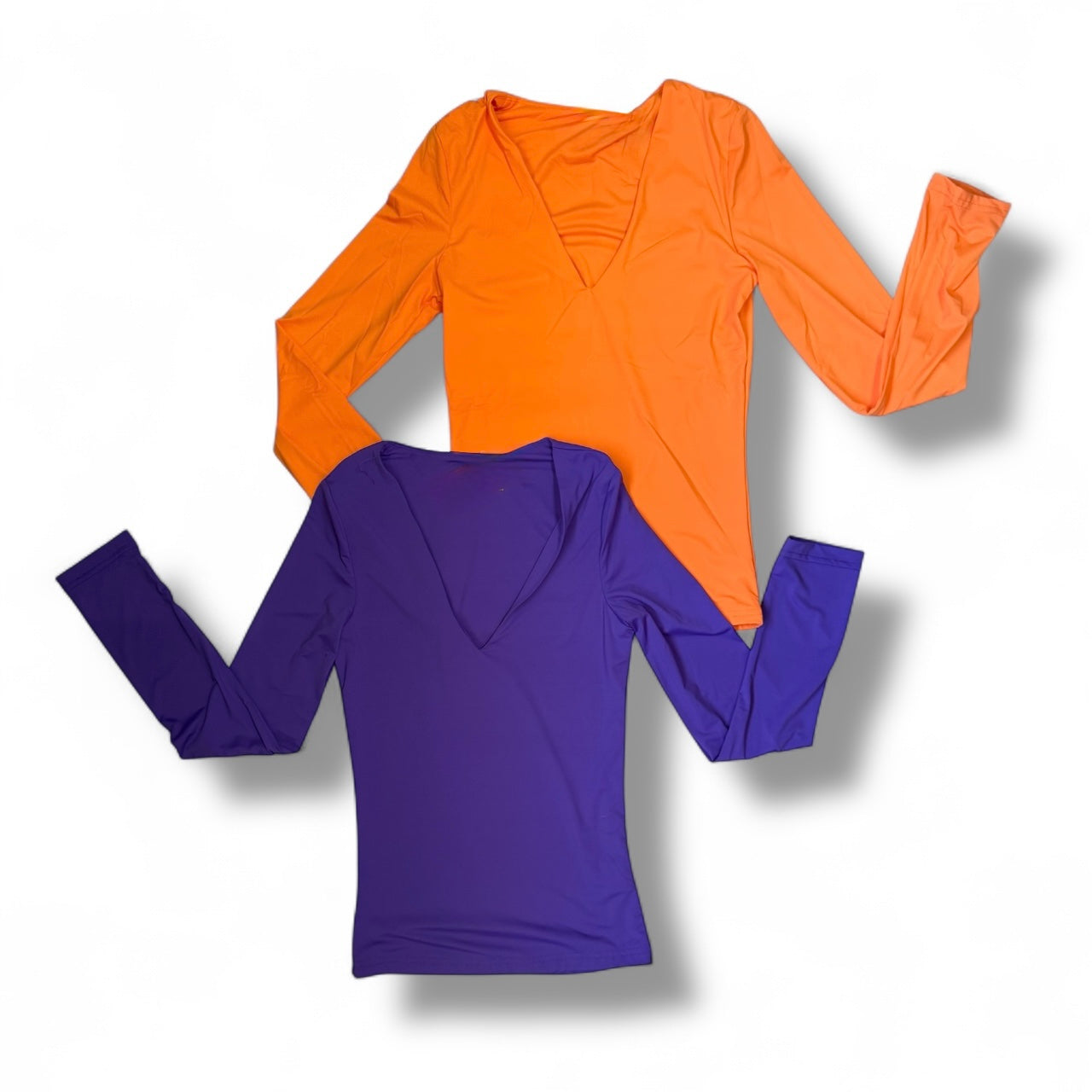 Una pieza básica que nunca falla. Esta camisa manga larga con escote en V está confeccionada en tela elástica y ligera que abraza tu figura sin perder comodidad. Perfecta para combinar con cualquier estilo: casual con mahones o más elegante con falda o pantalón.